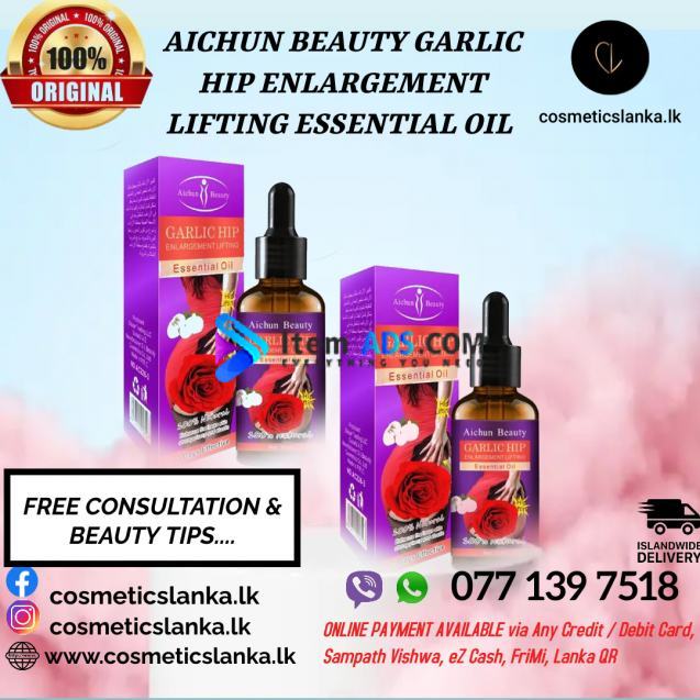 ඉතාමත් විශාල පාරිභෝගික ප්රතිචාර ඇති ORIGINAL Aichun Beauty Garlic Hip Enlargement Lifting Essential Oil දැන් ලංකාවේ කොහේ හිටියත් ඔබේ ලගටම අපි ඉතා ඉක්මනින් deliver කරනු ලැබේ