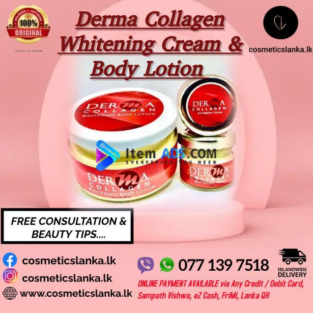 Derma Collagen Whitening Cream මගින් ඔබේ මුහුනේ තිබෙන කුරුලෑ, ලප කැලැල්, බ්ලීච්න් ආසාදන නිසා හටගත් ආසාදත්මිකතාවන සහ අදුරු ලප කැලැල් දුරුකර ස්වාභාවික පැහැපත් කිරිමක් සිදුවේ