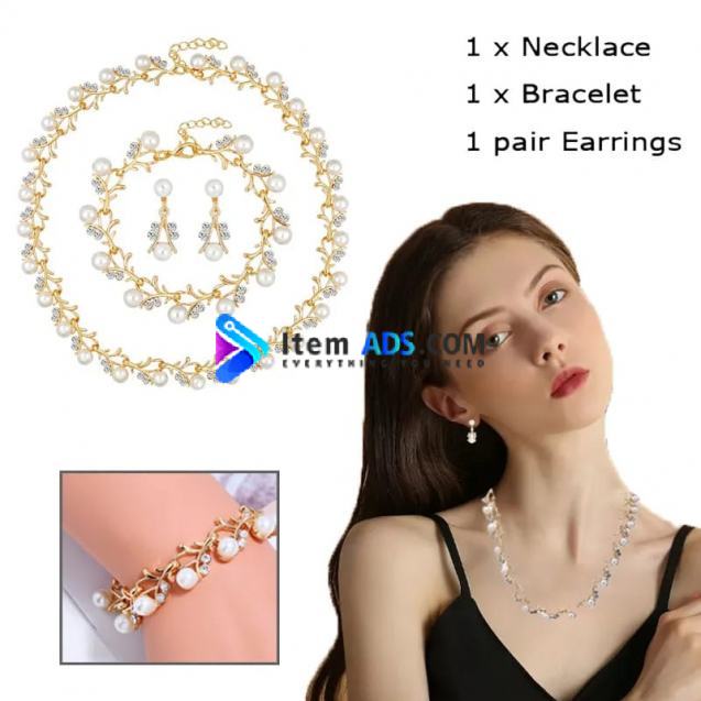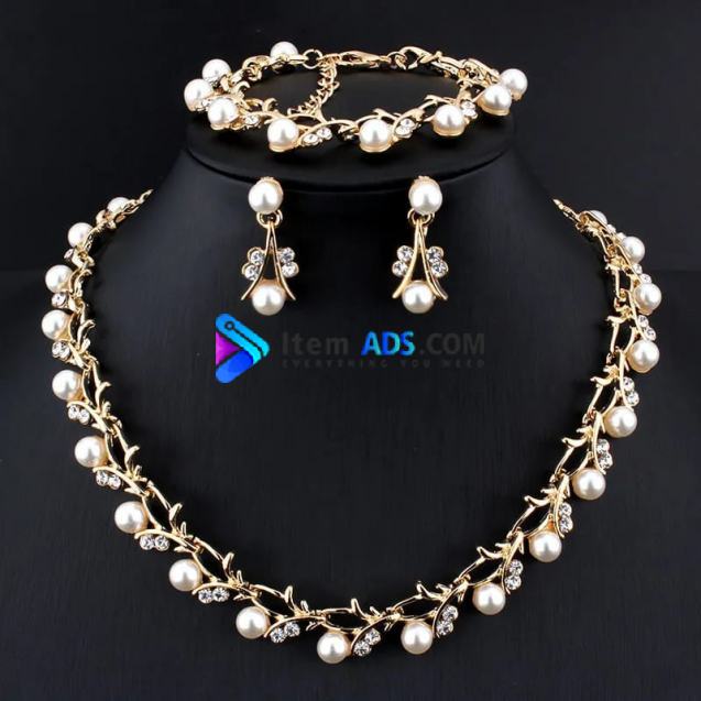 CANPEL Fashion Imitation Pearl Wedding Necklace Earring Sets Bridal For Women Elegant Rhinestone Jewelry Sets Party Gift