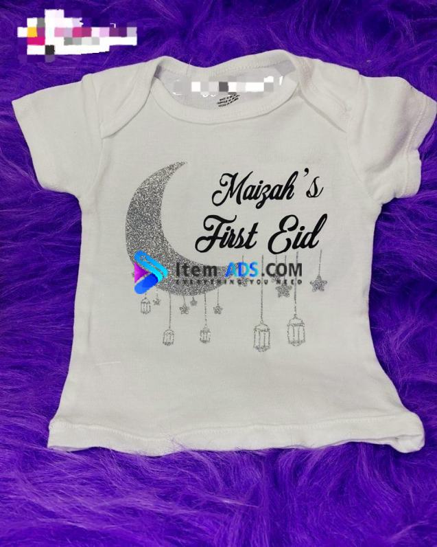 Customized t shirt & Baby Suit Available Black with silver gitter available 🔥♥️