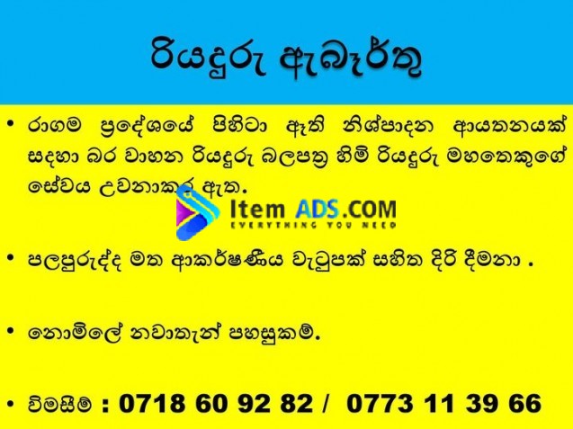 Published by No Name 30 Sep 16:07 pm Ragama, Gampaha