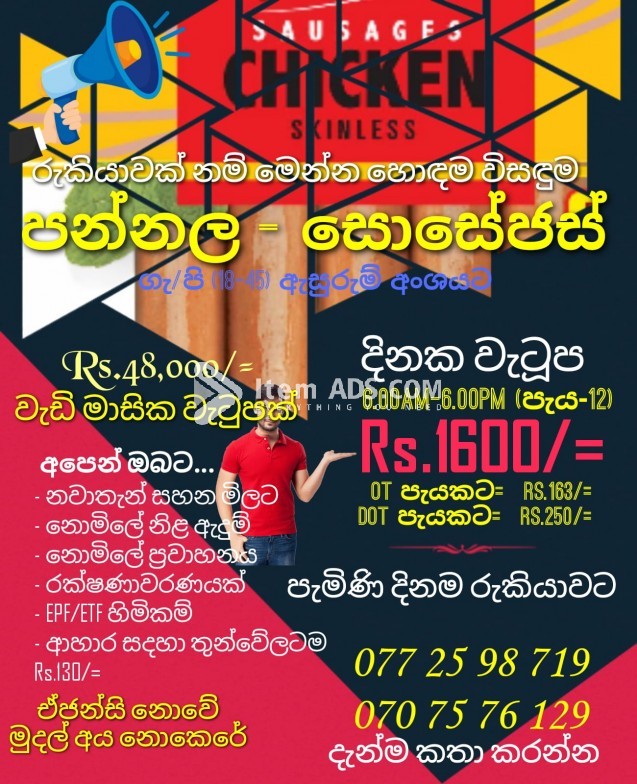 male /female all can apply for a job in sausages packing section