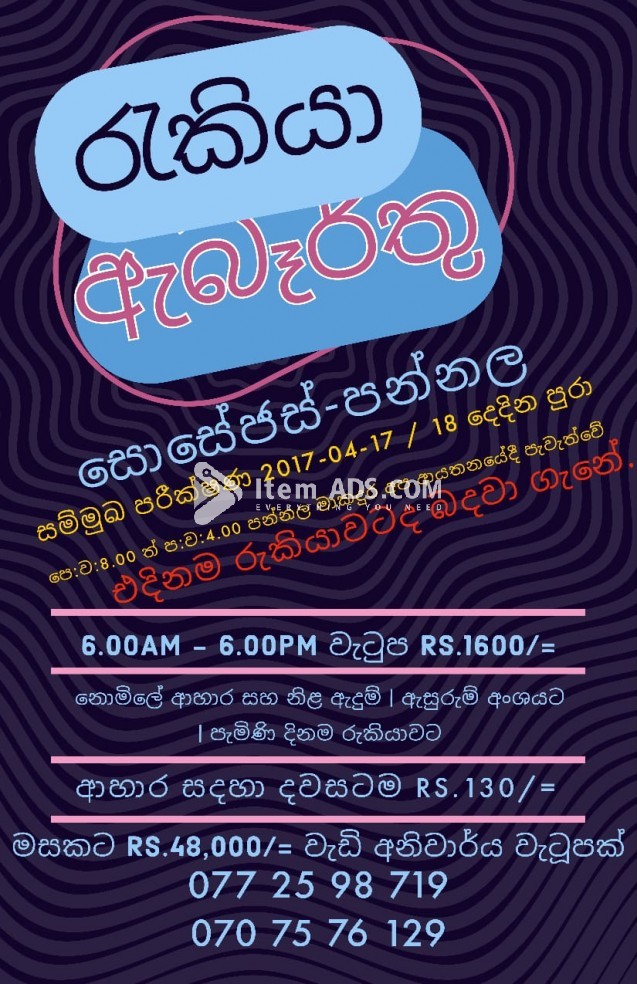 Job vacancies are available in Pannala