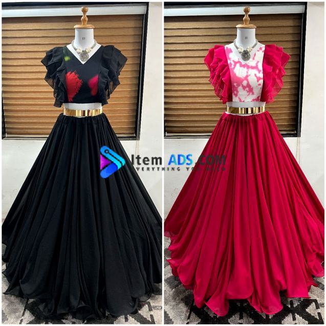 💃Lehenga Fabric : Faux Georgette With * Urf Cutting No Joint in Flair*