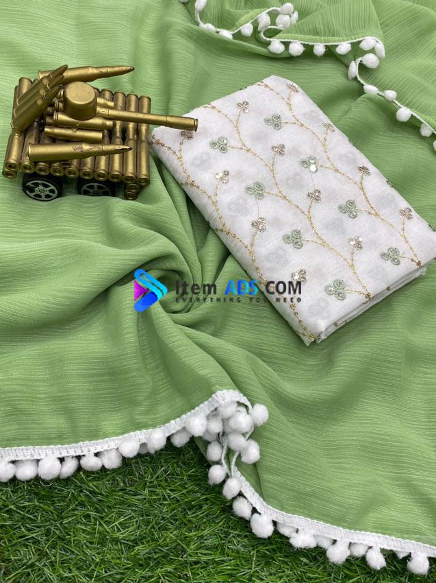 PATTERN - White cat saree with pompom lace & contrast Sequins work Blouse