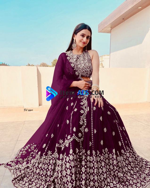 🥻LEHNGA DETAILS: GEORGEET WITH EMBROIDERY SEQUENCE MULTY DESIGN WORK