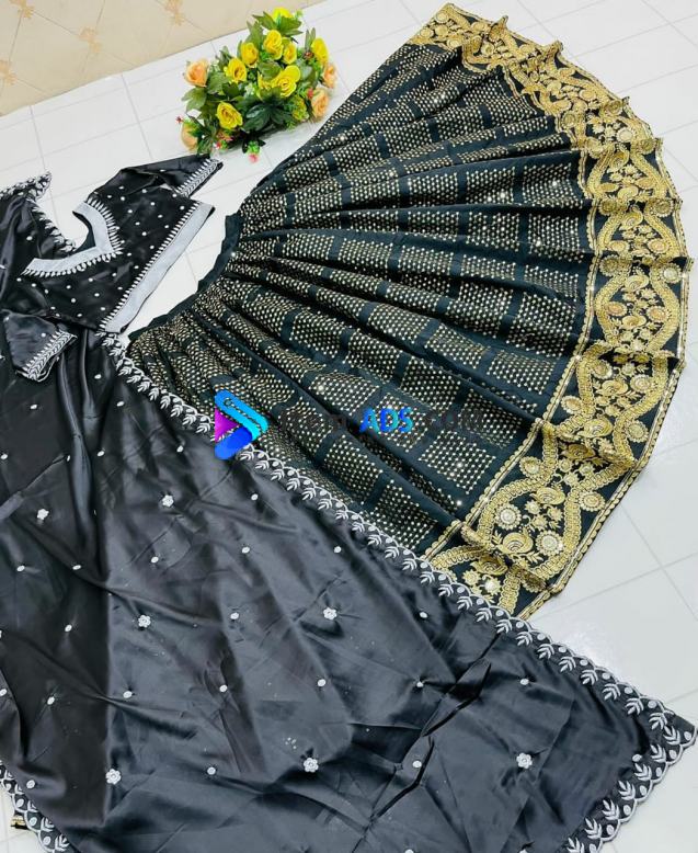 👉👚*Dupatta Fabric *: Malay Satin Silk With Emrodery Work With Full-Stiched