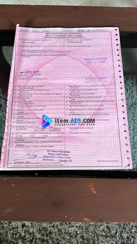PRIUS 2012/2015 20000km 0767974091 Abs, battery running condition good. Negombo. 45/-💯net Need commition 50/- 1 brocker.