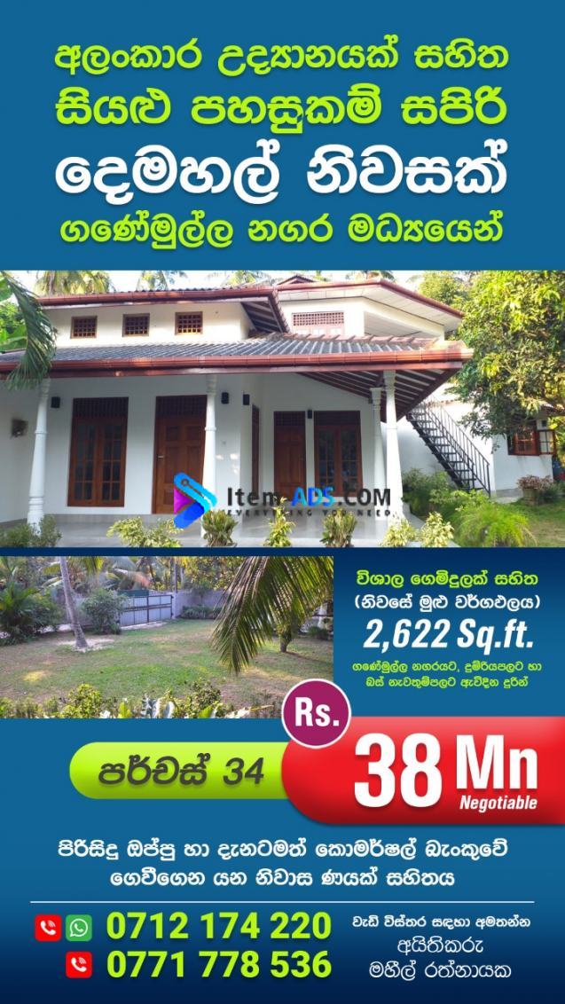 🔴 ගණේමුල්ල නගරය මධ්යයෙන් දෙමහල් නිවසක්