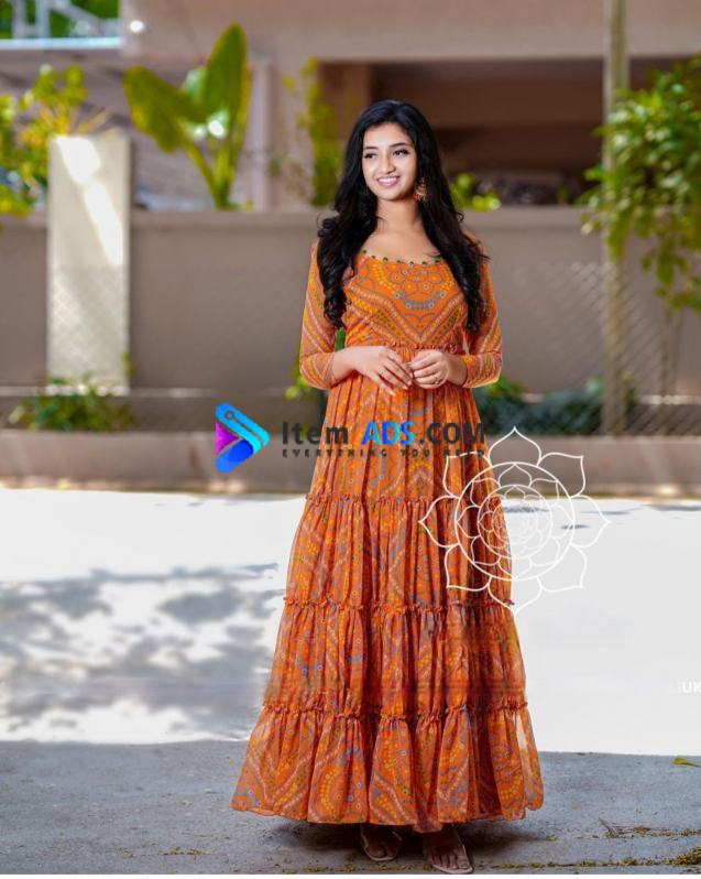 we would love to go floral all the time like you! This Bandhani printed georgotte Maxi is uniquely designed with fully flare. Its specially designed for comfortableness and Crafted from georgotte. 🧡💙