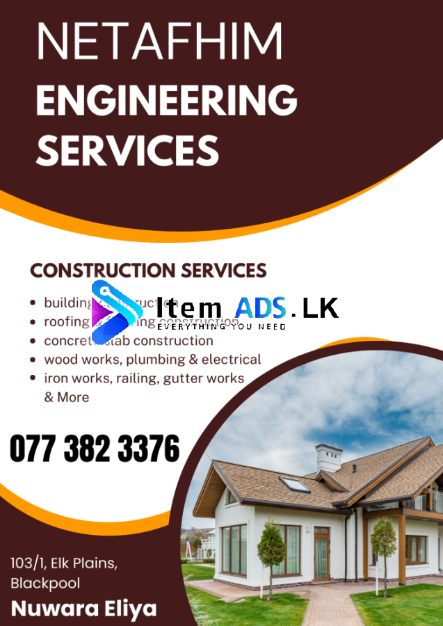 ගොඩනැගිලි ඉදිකිරීම සදහා නුවර එළිය ප්රදේශයේ ප්රමුඛ ආයතනයක් වන නෙටාෆ්හිම් ඉංජිනියරින් වෙතින් නවීන සැලසුම් වලට අනුව නිවාස, හෝටල්, කාර්යාල, කඩ සාප්පු ඉදිකිරීම, පැරණි නිවාස සහ ගොඩනැගිලි අලුත්වැඩියා කිරීම, පැතිබැමි ඉදිකිරීම, ගොඩනැගිලිවල තීන්ත ආලේපන කිරීම්, ඇලුමිනියම් දොර ජනෙල් සහ පාටිෂන් කිරීම, කොන්ක්රීට් ස්ලැබ් දැමීම, වැහිපීලි ගැසීම, අමානෝ සහ යකඩ වහල සැදීම ඇතුලු සියලුම ඉදිකිරීම් කටයුතු සාධාරණ මිලගනන් යටතේ සිදුකරවා ගත හැක.