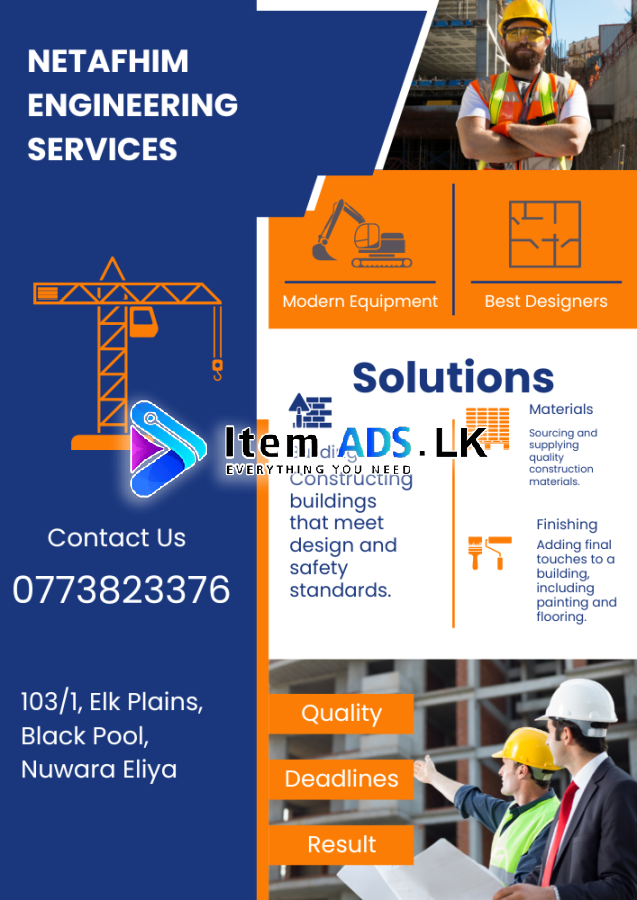 Netafhim Engineering Services is a premier construction company in the Nuwara Eliya area. It undertakes wide range of construction works including building construction, housing construction, roofing construction, painting works, concrete slab construction, flooring construction, iron steel and railing works, wood works around Nuwaraeliya, Hatton, Welimada, and Kandy areas. We have completed many housing and hotel construction projects. Also, we supply skilled workers such as masons, carpenters, plumbers, electricians for construction sites for the best rates.