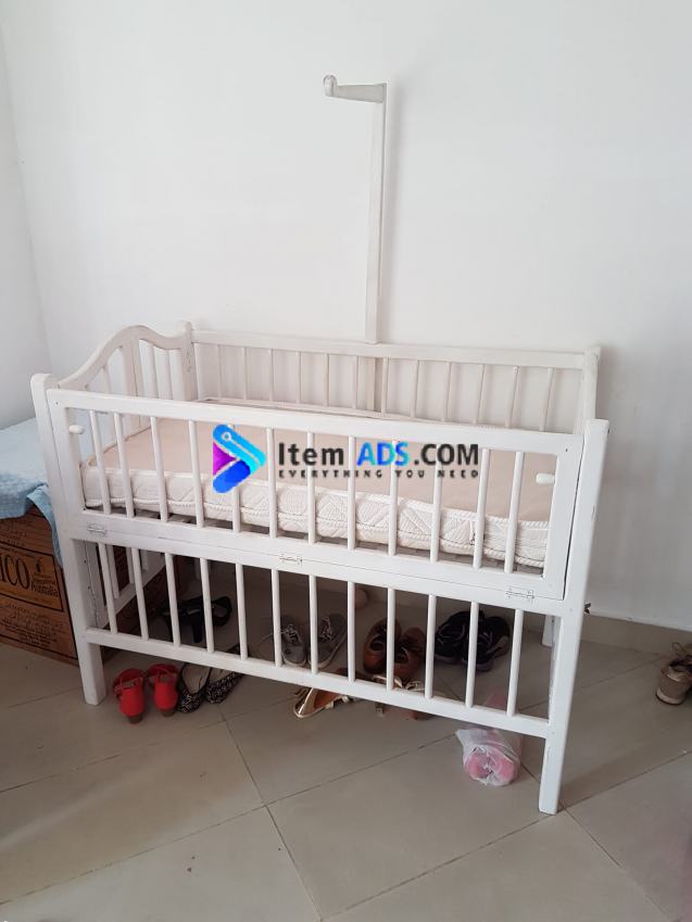 Used for less than a month. All in very good condition & with mattress. Foldable. Size large