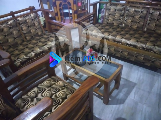 This sofa set made of mahogani wood includes three sofas ( 3, 2, 1 seats )with free coffee table ( with out glass top)