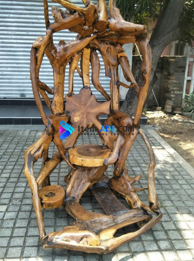It's can be used indoors and outdoors . Under shelter material from solid teak roots Wood.