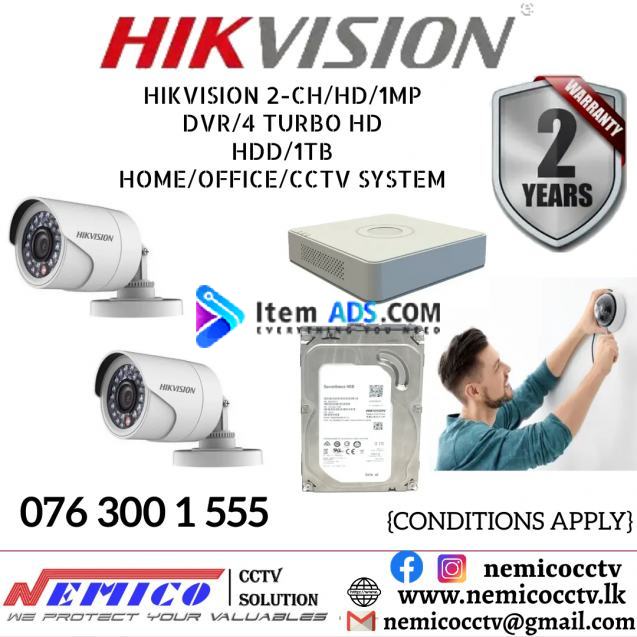 Hikvision CCTV CH 2-HD/ 1MP/ Bullet , DVR 4 Turbo & HDD