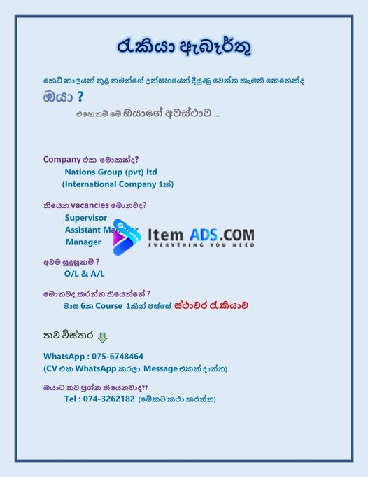 ඔබේ දැන්වීම itemads.lk හි පළ කරන්න