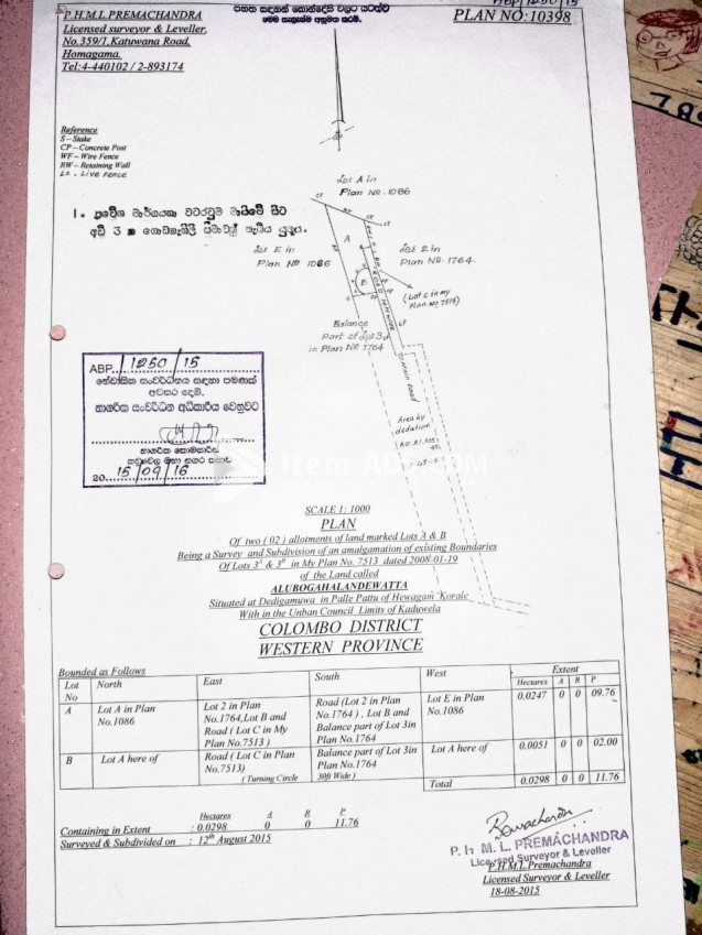ඉඩමේ විශාලත්වය 10පර්චස්