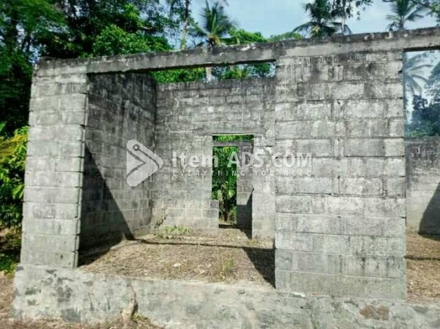 ( කාමර 02යි. සාලෙයි, කුස්සියයි , බාතෘම් එකයි බිත්ති බැද ඇත, ලිදක් ඇත.)