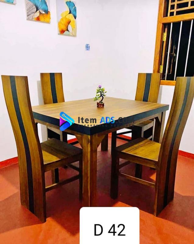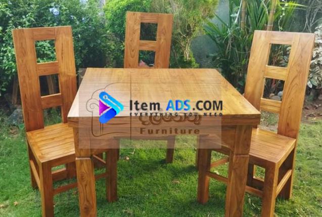 🎀අඩුම මිලට තේක්ක 3*3 කෑම මේසය හා පුටු හතර,