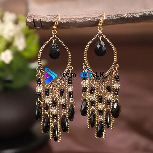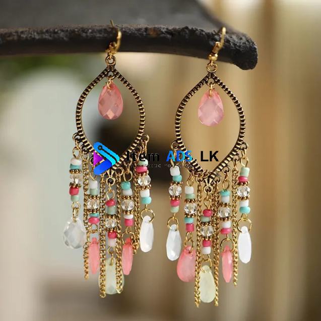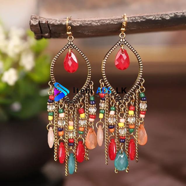 Bohemian Antique Gold Color Long Water Drop Tassel Earrings for Women Vintage Colorful Geometric Drop Dangle Earrings Jewelry