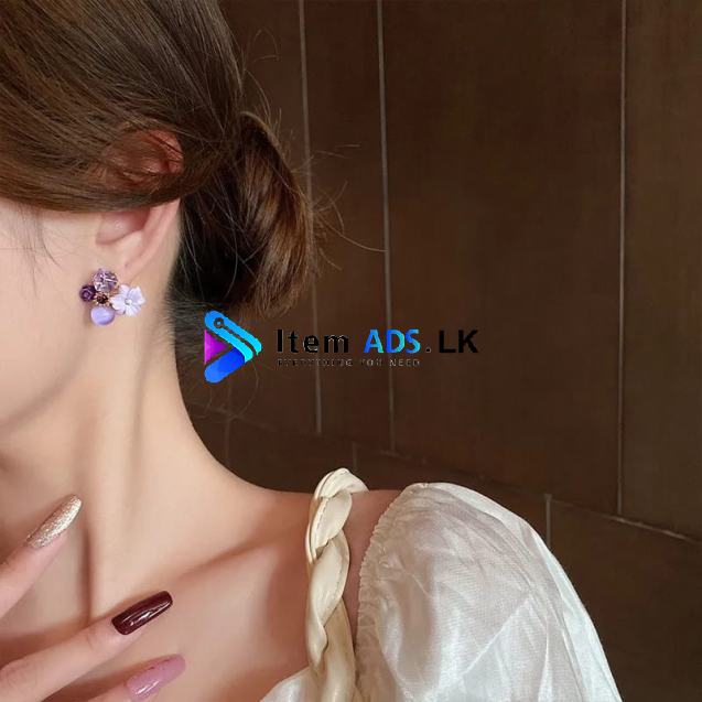 Fashion Purple Crystal Flower Earrings for Women