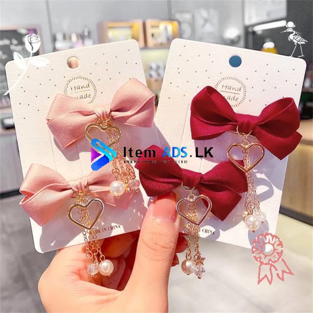 2pcs Fashion Tassel Bowknot Hairpin Luxury Pearl Crystal Star Pendant Hair Clip Women Girls Bangs Side Clip Headwear Accessories