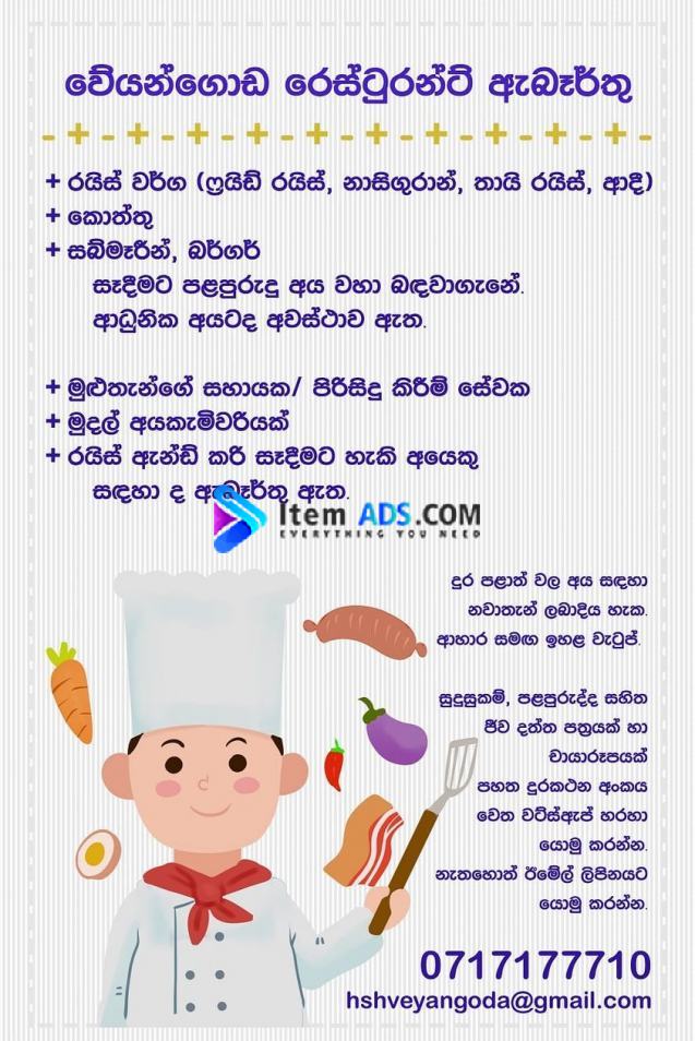 + මුළුතැන්ගේ සහායක/ පිරිසිදු කිරීම් සේවක