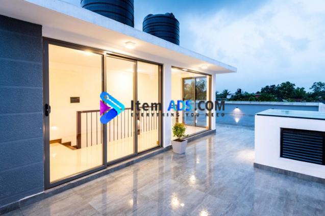 This architect designed luxurious masterpiece located in Battaramulla -Koswatta. Nsetled in 8.7 perches land, this 3 story 4,500 square feet elegant house has following features: - 4 bedrooms with 4 attached baths - All bathrooms are fitted with Italian tiles & fittings - A maids bedroom with an attached bathroom - Open plan living with a wet kitchen - Majority of the floors are done with hard teakwood. - A gym/ study area & a wide TV lounge -8.30*4 Pool with an attached jacuzzi all finished in mosaic tile with a water fountian. - Wide roof top area well suited for rooftop bar. - All plumbing are PPR with warrenty - Full climate control system( Air conditioned) with tempered glass. - The house is located in a gated residential scheme. - Full interior plan is available upon request. 1 fly million nonntiahlo 0755560613 Nirosh Perera