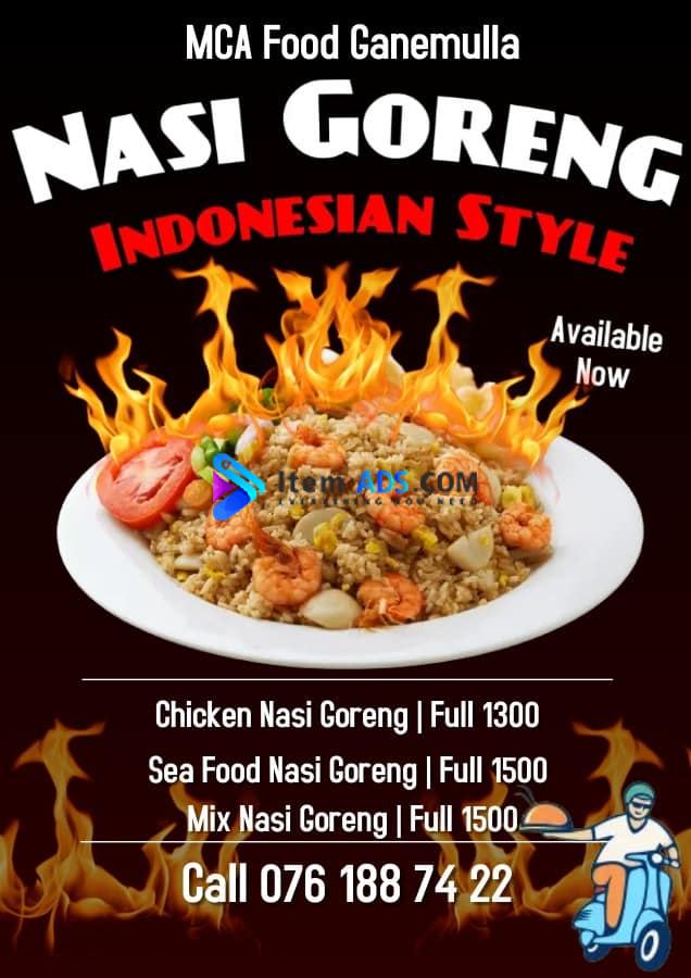 ඔබට අවශ්ය බයිට් වර්ග, ෆයිඩ්ර්රයිස්, කොත්තු, චීස් කොත්තු දැන් MCA Food Ganemulla වෙතින් ගණේමුල්ලේ සිට 10km ඇතුලත ඕනෑම තැනකට ගෙන්න ගන්න පුළුවන්.