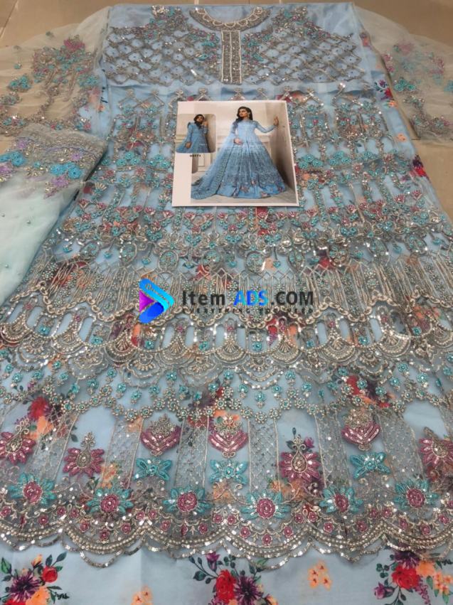 Sleeves :- Butterfly net with Heavy Embroidery And Mirror work3