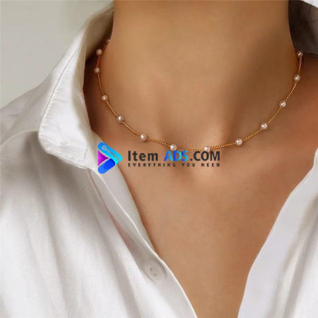 New Beads Women's Neck Chain Kpop Pearl Choker Necklace Gold Color Goth Chocker Jewelry On The Neck Pendant 2022 Collar For Girl
