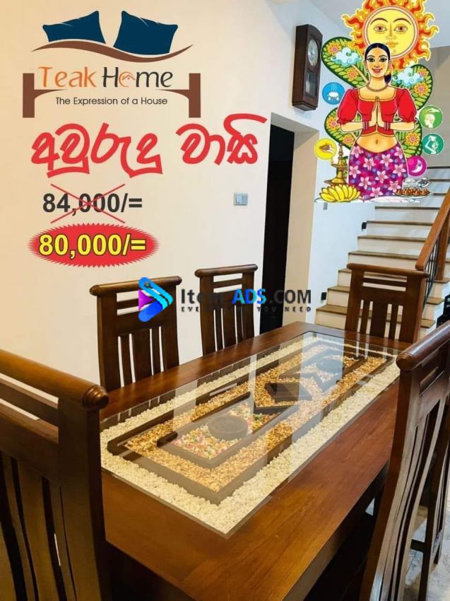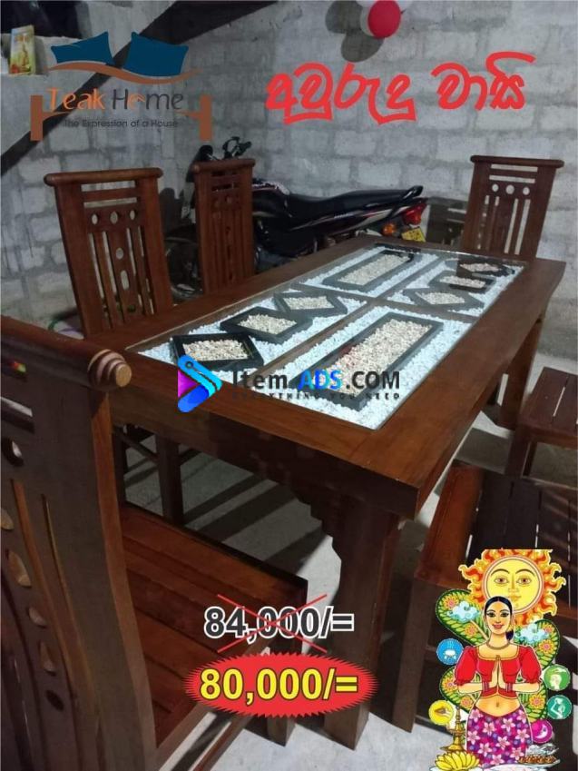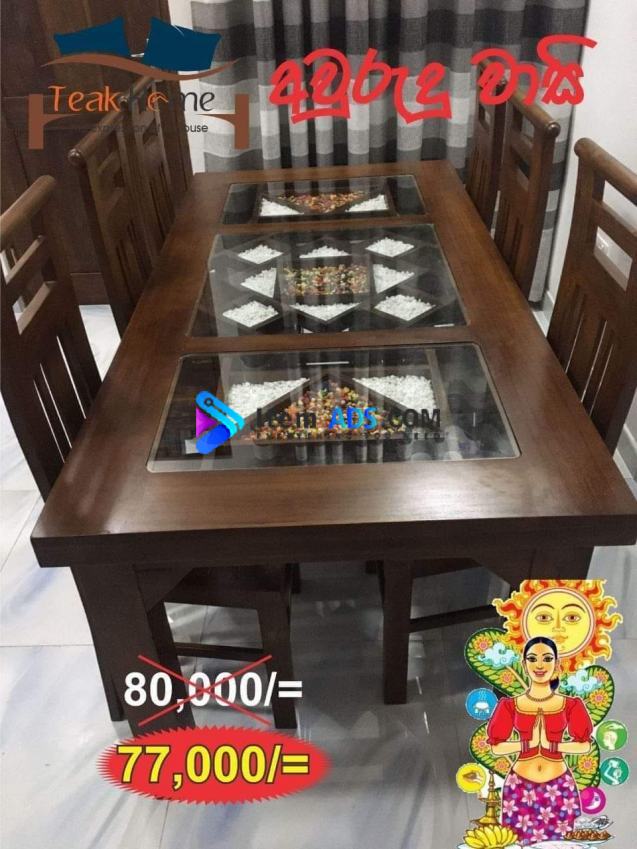 තේක්ක කෑම මේසය හා පුටු 6