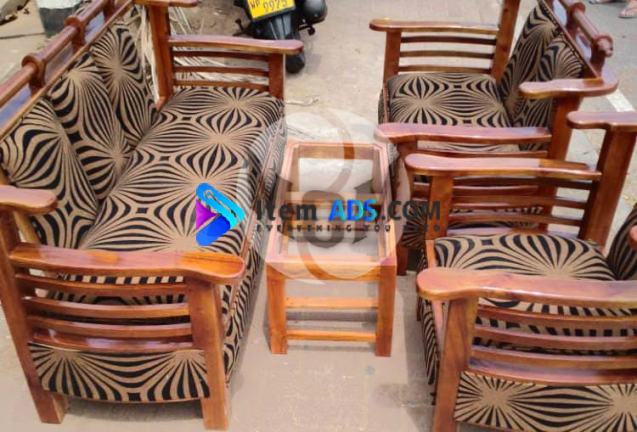 This sofa set made of mahogani wood includes three sofas ( 3, 2, 1 seats )with free coffee table ( with out glass top)