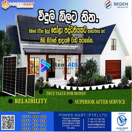 மூலம் வெளியிடப்பட்டது Power Mart Private Limited 23 Mar 10:44 am மகரகம, கொழும்பு