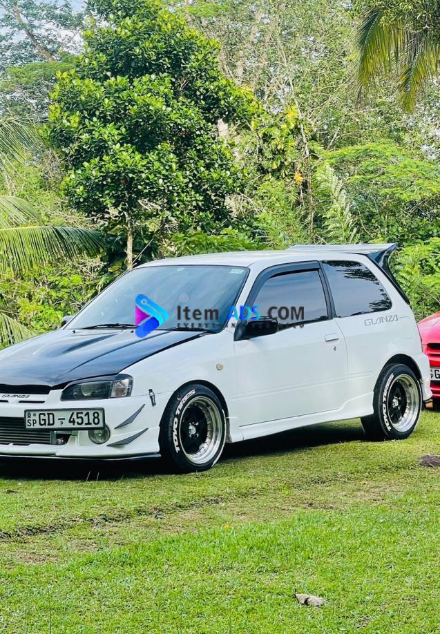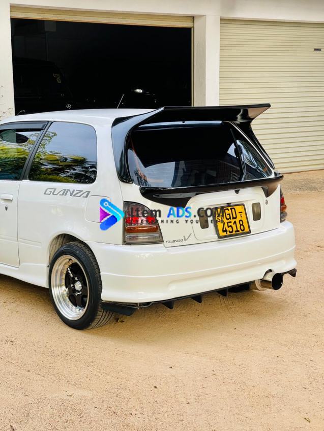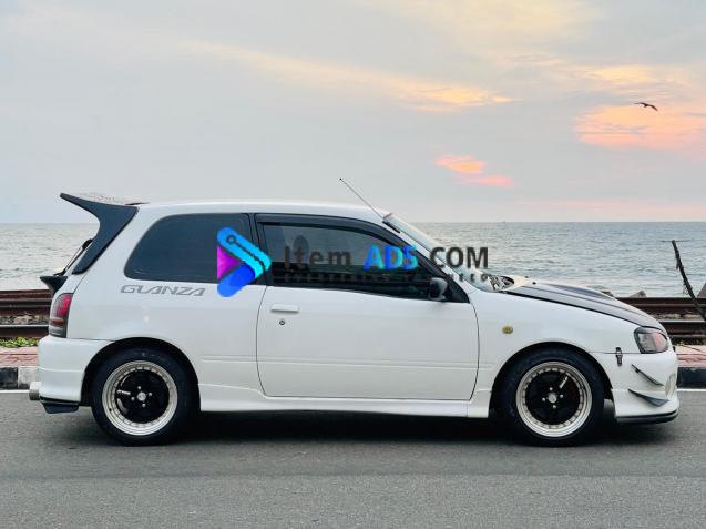 Toyota Glanza V For Sale GD-**** 99 Interior & Exterior Dual Airbags/ABS/Touch A/C Front mount Intercooler Aluminium Radiator LSD Gearbox New 4 tyres less than 1000km New battery with warrenty 2.5 Stainless Steel Straight Piped Short shift Gear Apexi Air filter HKS Blow off valve Intercooler Water Spray NGK Spark plug wires 0.8 Bar boost Blitz dual Turbo timer Oil catch can Defi Tachometer/Boost Gauge/Voltage Meters/Water temp Gauge/Oil pressure Gauge/Air fuel gauge. Kenwood Sound system Good fuel economy on Long Rides (12-15kmpl) All the pending Repairs done Just buy and Ride Call for more information 0779727574