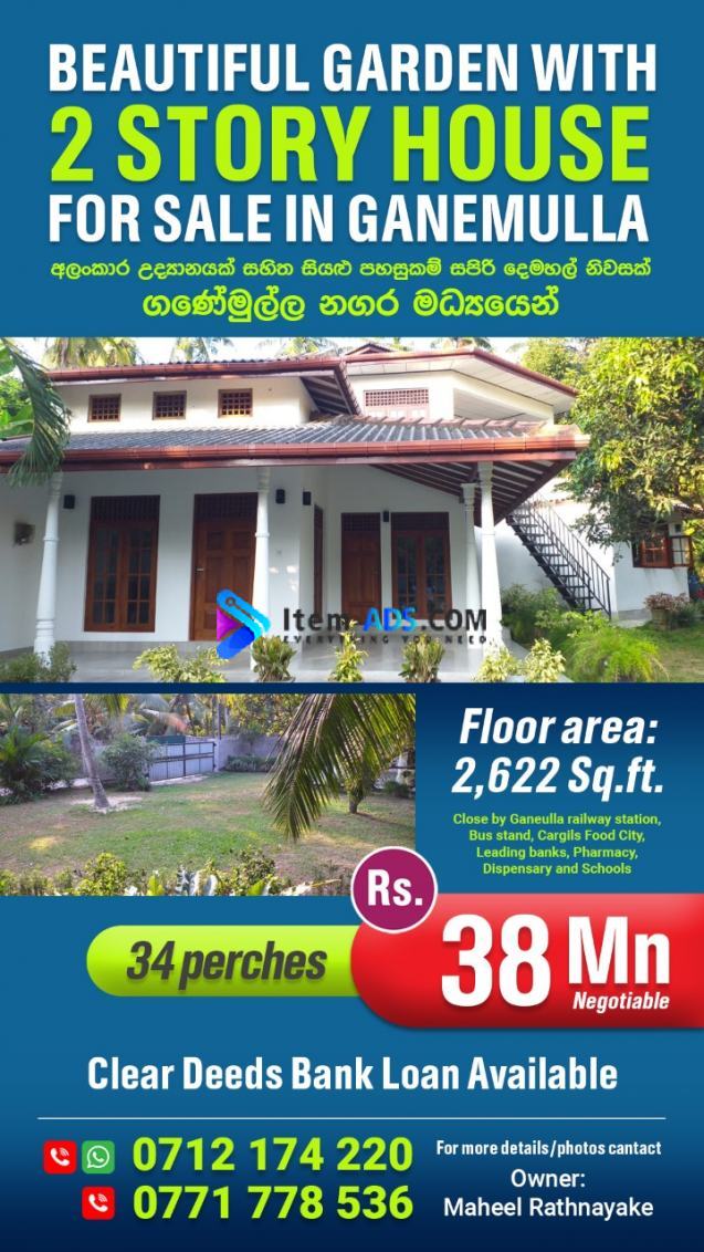 BEAUTIFUL GARDEN WITH 2 STORY HOUSE FOR SALE IN GANEMULLA